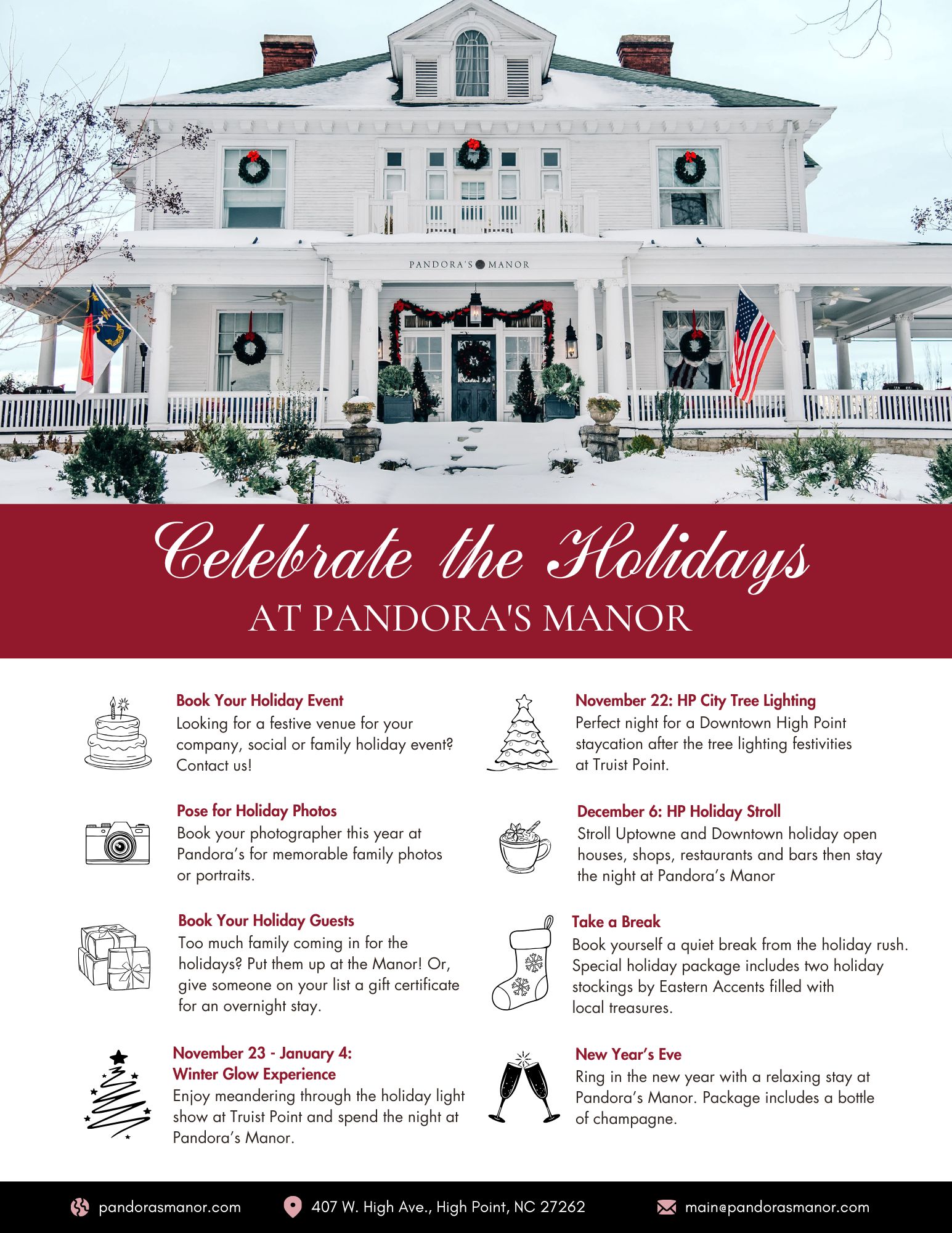Celebrating a special occasion or just need a break? Spend some quality time together at Pandora's Manor.